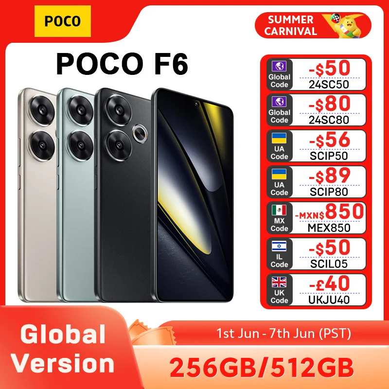 POCO F6 5G Smartphone Global Version Snapdragon®8s Gen 3 6.67″ 1.5K 120Hz