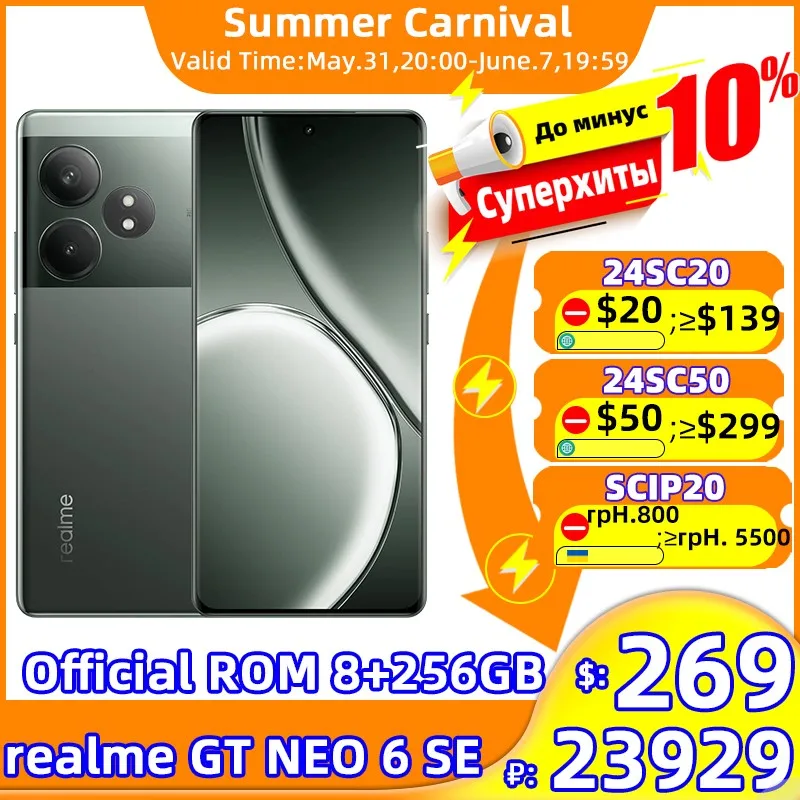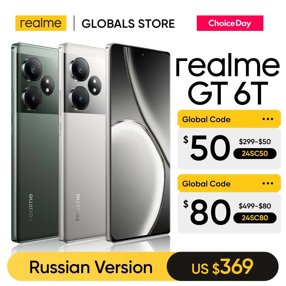 Russian Version realme GT 6T Smartphone 6.78″120Hz OLED 6000nit Display 120W Charge