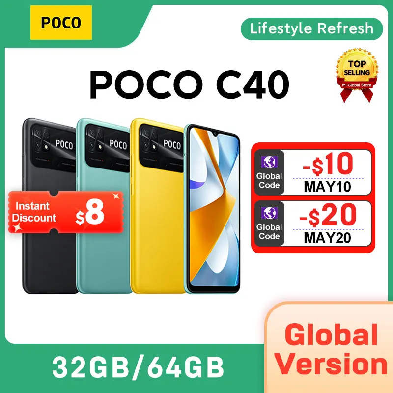 Global Version POCO C40 Smartphone 3GB 32GB / 4GB 64GB 6.71” Display