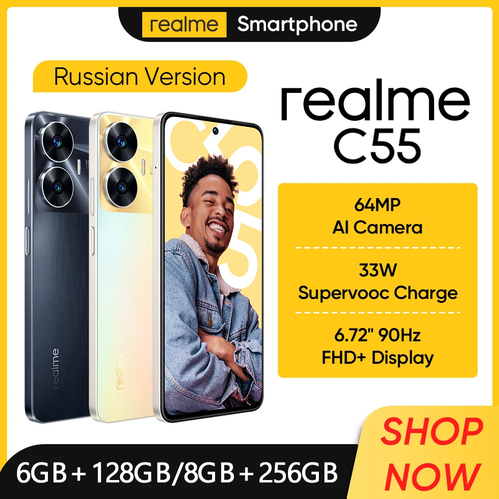 Russian Version Realme C55 Smartphone New 64MP AI Camera Helio G88 Processor