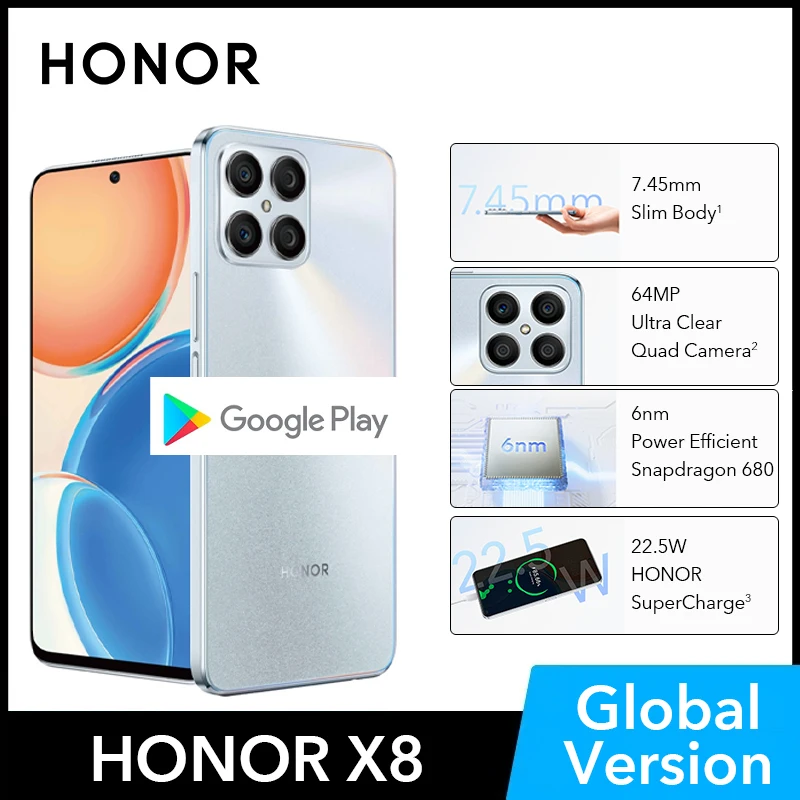 HONOR X8 Global Version Smartphone 6.7″ LCD Edgeless Display 6+128GB Android 12