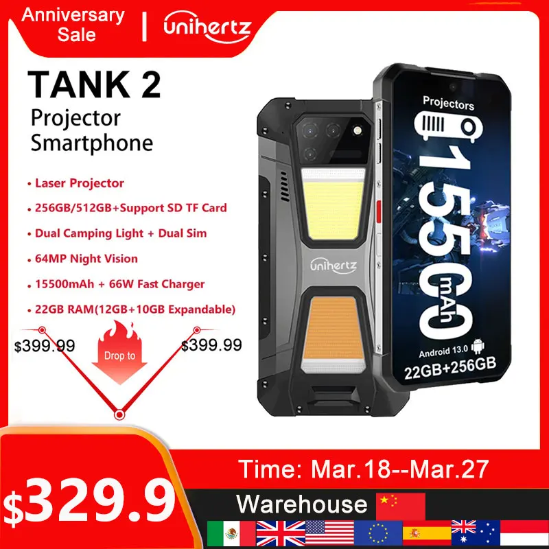 In Stock 8849 Tank 2 by Unihertz Projector Rugged Smartphone 22GB 256GB