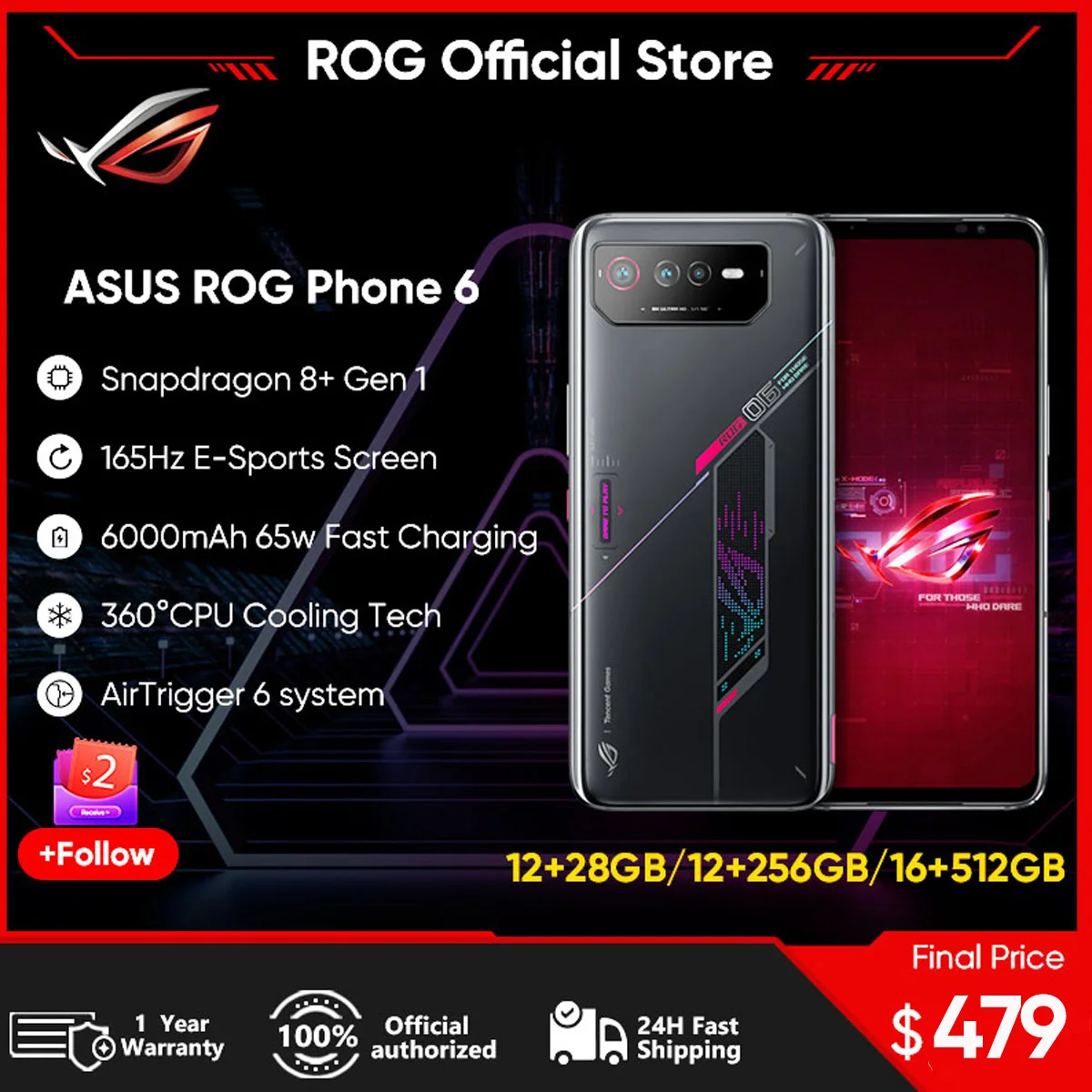 Original ASUS ROG 6 5G Snapdragon 8+ Gen 1 6.78” 165Hz E-Sports