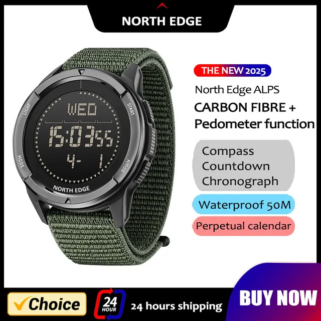 NORTH EDGE 2025 New ALPS Men’s Carbon fiber Digital Watch Shock Militray