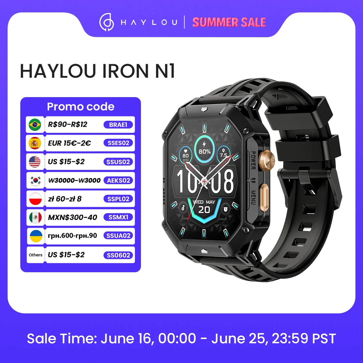 HAYLOU IRON N1 Smart Watch 2.13’’AMOLED Display 5ATM Waterproof Bluetooth Call Sport