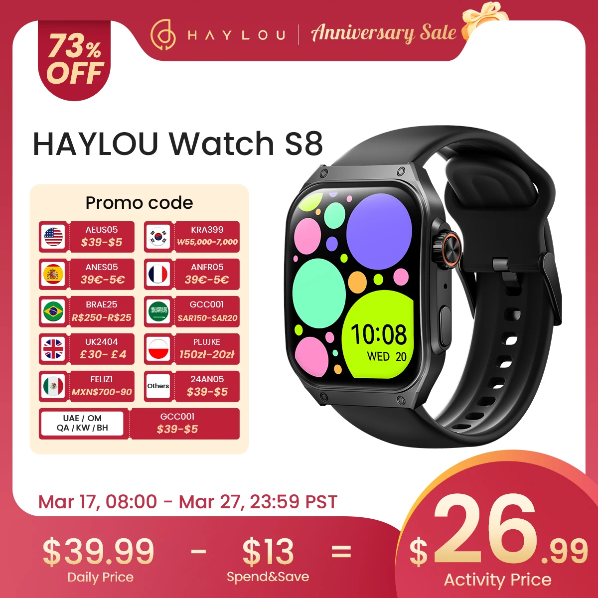 HAYLOU Watch S8 Smartwatch 1.96” AMOLED Curved Screen BT5.3 Bluetooth Call AI