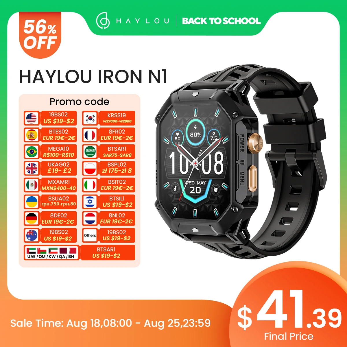 HAYLOU IRON N1 Smart Watch 2.13’’AMOLED Display 5ATM Waterproof Bluetooth Call Sport
