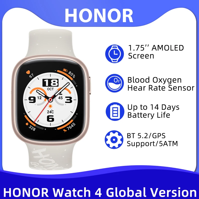 Global Version HONOR Watch 4 1.75” AMOLED Screen Smart Watch GPS Blood