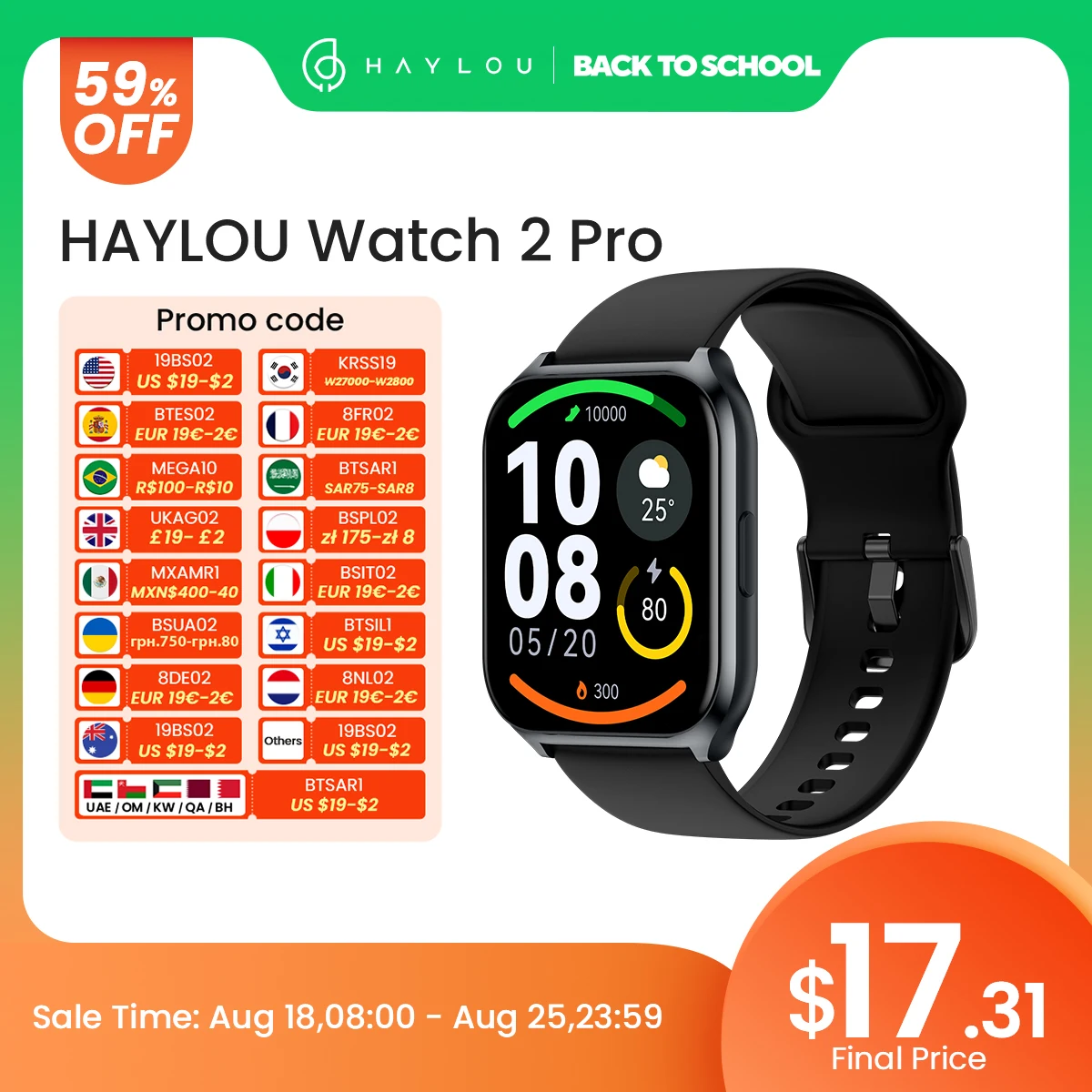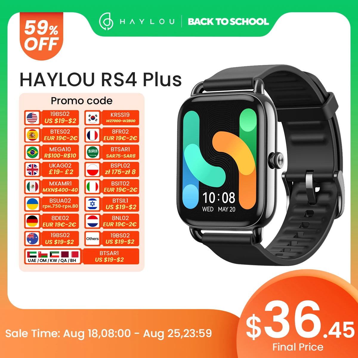 HAYLOU RS4 Plus Smartwatch 1.78” AMOLED Display 105 Sports Modes 10-day Battery