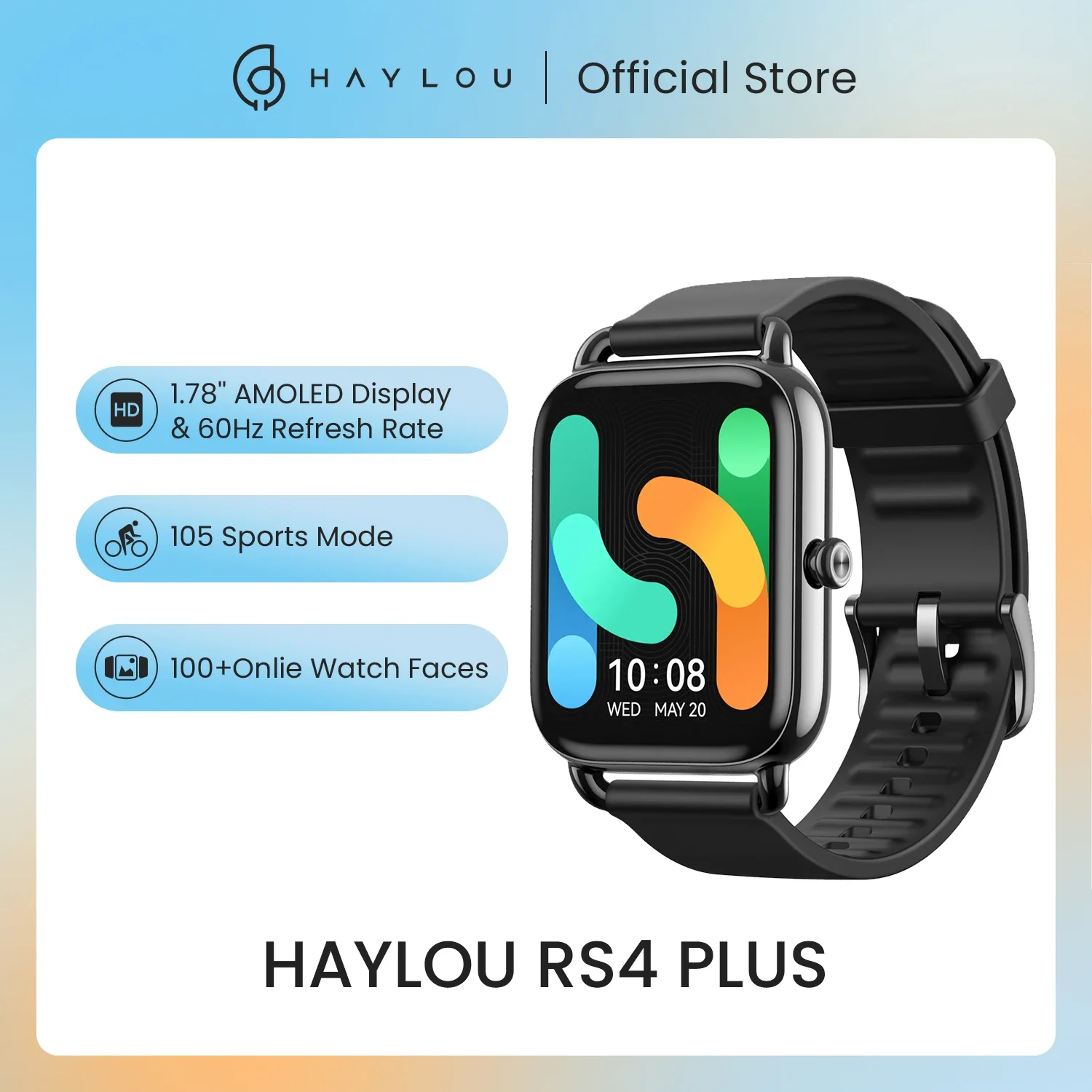 HAYLOU RS4 Plus Smartwatch 1.78” AMOLED Display 105 Sports Modes 10-day Battery