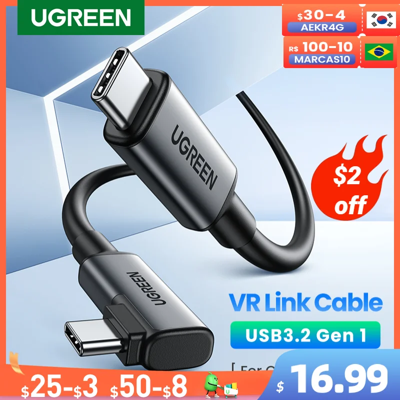 UGREEN USB C Link Cable for Quest 2 Headset VR USB3.2 Gen1 High Speed 5Gbps 5m Charging Cable 60W USB C to Type C Link CableTienda: AliExpress